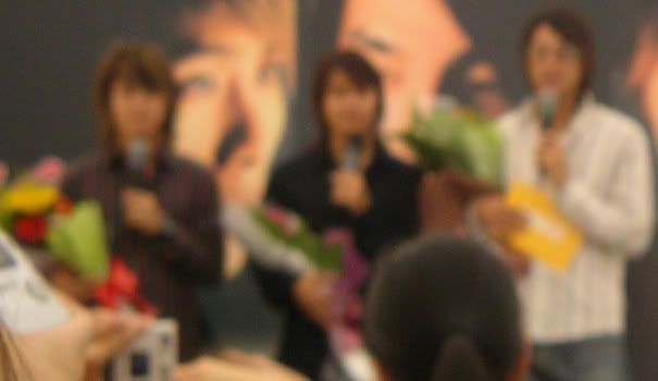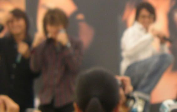 Went over to shuyi’s place after the concert to bath b4 we walked to j8.. on our way back. We met jerry… he jus came back frm jolin’s concert cos he got free tix.. he said veri there’s veri little pple at jolin’s concert…. Had a hard time tonning…. Met up wif some stipid kids.. better not tok abt them.. ‘ll spoil my mood… had a morning walk at 7 plus… bcos of the stupid guards… brought us rd the shopping mall jus bcos they had communication probs.. so stupid n dumb of them… finalli at ard 3 plus… 56 reached… yeah…. Sw is so gd looking… hee… they didn’t have time to perform cos they need to go 4 stars award later… had a mini sw’s celebration organized by the xly pple.. so dumb.. they got sw a cake n gave each of them a branch of flowers… omg… who on hell ‘ll give 23 big guys, all above 30 yrs old flower… tink even a 3 yr old kids wont wan to have flowers 4 bdae present… but sw is really veri happie yesterdae… I can sense it… he shouted without his mike twice to thanx all the fans… once went the xly pple presented him the cake… the other time when we’ll singing the bdae song… finalli the auto session start… cant wait 4 it to start not bcos I wan to see sw but there’s tis bunch of mad pple standing behind me tat keep screaming for mz n wanted to scream 4 xd… the pt is mz is not here… they tink they can scream so loud till mz at tw can hear them… all I can say is stupid!!! The line when slowly… when we’re near the stage n the place is not as noisy… we shouted : “ shao wei, sc ting ni!!” he looked up n nodded at us…. He’s so sweet… I really like the way he appreciate the tings we do 4 him… hee… thanx to e4 members… so must repay them by shouting 4 xz… “ xz, ni zui ban!!” n the carrot in the grp likes rf so we got no choice but to shout 4 rf oso “ rf, jia you!!” ling zhi the host then made a comment by saying tat we still have energy to shout in spite of us shouting at the concert 2molo… when we got nearer, we decided to shout again… we shouted the same ting again… tis time sw looked up, smiled n waved n us.. u can imagine the next ting I’ll do is….. SCREAMED!!!!!! Haha… helped shuyi to shout “ xz, ni zui ban!!!” again… n onli the both of us shouted… suppose to do it 2gather wif the rest…. Haiz… finalli n finalli, we got on stage… Amanda went up 1st…. cos she’s suppose to pass the present to sw… end ups he jus left the present on the table n left… next time must train her to tok to sw… I went behind her… sitting 1st on the table is xz.. 1st time I took notice on him… cos he always sit beside sw… so I’ll always put all my focus on him… he looked up n smiled… cant remember if I said thanx or smiled back.. but I tink I did none of them.. haha… then is rf… as u can see… he’s sitting beside sw… so of cos I cant remember how he looked n wat he did… next is the star of the dae….. SHAOWEI!!! Went up to him n said